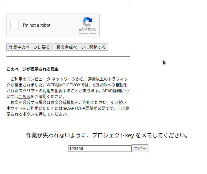 完了reCAPTCHA画面でページをリロードすると、プロジェクトに復帰できなくなるのをなんとかしたい